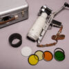 ゼニットMT-1「サプライズ」は、KMZによって1979年から約1990年まで製造されたハーフフレーム35mm一眼レフカメラです。これはフルフレームのゼニット19をベースにしており、医療用写真用に設計されています。カメラは、M42レンズマウントを使用し、M42フィッティングのレンズを使用できるように設計されており、キットのHelios-44M-450mmf/2[2]またはこちらに示されているHelios-77M-450mmf/1.8で販売されていました。また、独自のブリーチロックレンズマウントを持つものもあり、そちらには50mmf/7Industar-50Mtと30mmf3/5Mir-25MTの2つのレンズが存在します。どちらも固定焦点で固定絞りであり、レンズキャップに使用されるバネに接続されたラッチも備えています。このフィッティング用の内視鏡アダプタも存在します。ゼニット19とは異なり、MT-1には露出計がありません。シャッタースピードは1-1/500と1-1/1000が存在します。少なくともいくつかのカメラには固定のデータバックが付いており、オレンジ色の数字(1から31まで)を印字することができます。