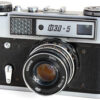 FED50(ФЭД-50キリル文字で)は、ウクライナの工場FEDによって製造された35mmフィルムビューファインダーカメラで、固定レンズを搭載しています。1986年から1996年まで生産され、107,530台が製造されました。レンズは「Industar81」で、焦点距離は38mm、最大絞りはf2.8、最小絞りはf16です。露出を正確にするために、セレンメーターがあり、シャッタースピードと絞りを自動的に選択します。メーターはレンズの周囲に配置されており、レンズキャップが装着されているときはシャッターが切れないようになっています。マニュアルモードでは、カメラは常に1/30秒のシャッタースピードで撮影され、写真家はf2.8からf16までの任意の絞りを選択できます。一方、バルブモード(B)が選択されると、カメラはf2.8のレンズ絞りで固定されます。自動モードでは、カメラは絞りとシャッタースピードを自動的に選択し、シャッタースピードは1/30秒から1/650秒、絞りはf2.8からf14までとなります。ホットシューも搭載されています。