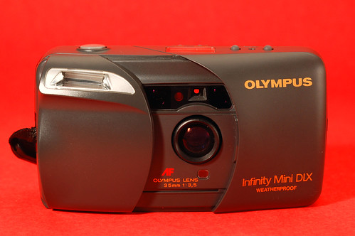 1995年のオリンパスAF-1ミニ(アメリカではインフィニティミニ)は、小型の防水完全自動コンパクトカメラです。AF-10ミニとともに、1980年代に知られた高度なAFや測光、豪華なデザイン、スリムなスタイリングで知られるシリーズを復活させました。この「AF」シリーズのインカネーションは、エントリーレベルの「trip」シリーズとハイエンドのμ[mju:]シリーズの間に位置づけられました。AF-1は、次のようなμシリーズカメラと多くのデザイン機能を共有しています。レンズ:μ[mju:]-1と同じ、35mm、f/3.5、3群3枚構成のコンパクトボディシェル、スライド式のレンズカバーで、電源スイッチとしても機能フィルムの補助的な装填、内蔵モーターフィルム巻き上げ、フィルム終わり時の自動巻き戻し、途中巻き戻しオートフォーカス、範囲0.5m-∞、フォーカスロックオート露出プログラムモードフラッシュモード:オートフラッシュ、GN10、赤目軽減、フィルイン、およびオフフィルムISOはDXコードで自動設定