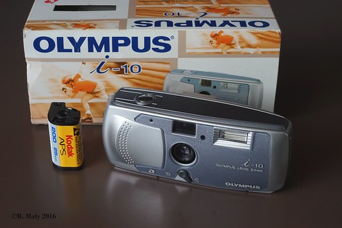 Olympusi-10は、APSフィルム用の非常にコンパクトなポイントアンドシュートカメラです。固定焦点の24mmf/7レンズを搭載し、さらに手動コントロールはありません。電源スイッチは、オフにするとレンズをカバーします。いくつかの仕様:24mmf/7レンズ、3群3枚構成プログラム電子シャッター1/50?1/200秒アルバダビューファインダー0.33倍倍率フォーカス範囲1mから無限遠自動ISO設定100、200、400赤目軽減ランプ付きの自動フラッシュ1CR2バッテリーで動作サイズ:123x50x36mm重量:130g