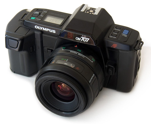 1986年、オリンパスは成功を収めていたOMシステムの一環として、完全なオートフォーカスの一眼レフカメラボディを作る試みとしてOM-707をリリースしました。一部の市場ではOM-77と呼ばれていました。1985年、ミノルタ7000がPentaxME-F、OlympusOM-30、CanonT-80、より本格的なNikonF3AFなどの様々な失敗した試みの後、使えるAFSLRとなりました。これにより、NikonF-501、CanonEOS650、OlympusOM-707、PentaxSFXなどの競合モデルがリリースされました。OM-707はその中で最も成功しなかったモデルでした。OMベイネットマウントを維持し、すべてのOlympusOMレンズを取り付けることができましたが、オートフォーカス用に特別に設計された新しいOMAFレンズには手動フォーカスリングがありませんでした。これは、最初のオートフォーカスシステムが非常に正確や感度が低かったため、手動でオーバーライドする必要がある場合が多かったため、不評でした。これに対するオリンパスの解決策は、「パワーフォーカス」という機能を含めることでした。