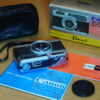 キヤノンによって1965年に発売された35mmハーフフレームビューファインダーカメラ、デミC。これは、2年前に発売された元のデミの交換レンズバージョンです。ネジ込みレンズマウントを使用し、セットには2本のレンズが含まれています。標準のSD28mmf/2.8と望遠のSD50mmf/2.8です。28mmレンズのフォーカス範囲は0.8mから15m(無限遠)までです。50mmのフォーカス範囲は1.2mから15m(無限遠)までです。ビューファインダーは0.41倍の倍率、90%のカバレッジ、および50mmレンズを使用するための追加のフレームを備えています。