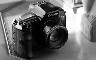 EOS5(1992-2000年製)は、高度な35mmフィルム一眼レフカメラでした。アメリカ市場ではEOSA2Eとして販売されました。このモデルで導入された2つの主要な技術革新は、5点選択式オートフォーカスと目制御フォーカスです。このカメラの長い製品サイクル中には、QD(クォーツデート)モデルも利用可能でした。アメリカ市場にはEOSA2モデルもあります。A2は目制御フォーカスを備えないほぼ同一のバージョンです。シャッターは30秒から1/8000秒までの速度を持つ電子フォーカルプレーンシャッターで、BモードとXシンクは1/60から1/200秒です。露出計は、0から20EV(100ISOf/1.4レンズ)の範囲でのTTL全開口測光用のSPCタイプです。測光モードには、16ゾーン評価、中央重点平均、3.5%スポットが含まれます。露出モードには、プログラム、シャッター優先、絞り優先、被写界深度AE、測光マニュアル露出モードがあります。マニュアル露出モードでは、EOS5モデルは