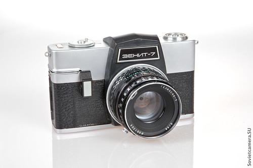 Zenit7は、約1967年から71年までKMZによって製造された35mmの一眼レフカメラです。このカメラには新しいバヨネットレンズマウントが組み込まれており、自動絞りダウン機能が備わっています(カメラによって絞りが自動的に止められ、露出シーケンスの一部となります。これは、以前のレンズのプリセット絞りや完全手動絞りを置き換えます)。また、新しいシャッターデザインも備えています:布製のブラインドを持つフォーカルプレーンシャッターで、これは以前の多くのソビエトカメラと同様に水平に移動しますが、1-1/1000秒の速度と「B」、そしてフラッシュ同期速度が1/125秒で備わっています。G.Abramovによると、後者の要件がシャッターを信頼性のないものにしたと述べています。AbramovとZenitCameraの両者が、カメラの設計が1963年に始まったと述べており、新しいシャッターの設計がカメラの生産を遅らせたと述べています。レンズマウントはかなり大きく、内部バヨネットを受け入れるデュアルバヨネット取り付けです。
