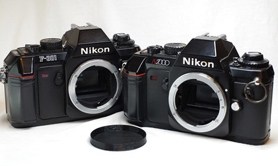 これは、モーター式フィルム巻き上げとTTL測光によって制御される自動プログラム露出システムを備えたマニュアルフォーカスの一眼レフカメラです。このカメラは、1985年に導入され、米国市場(N2000)と世界の他の地域(F-301)で異なる名前が付けられていました。N2000は、フィルム巻き上げレバーのない初のニコン一眼レフカメラで、簡単にフィルムを装填し、最大2.5fpsでの連続撮影が可能なモーター式フィルム輸送機能を備えていました。また、このカメラは、フィルム速度のDX認識を備えた初のカメラであり、ポリカーボネート製の構造を持つ初のカメラでもあり、将来のニコンカメラの先駆けとなりました。このカメラはおそらく、モーター式フィルム輸送機能を備えた最も小さなニコン35mmフィルムカメラです。カメラは4本の単3形乾電池、またはMB-3バッテリーホルダーを装着した場合は4本の単4形乾電池で動作します。トップコントロールパネルは使いやすく配置されており、ユーザーは非常に簡単かつ迅速に多くの機能にアクセスできます。Nラインのクラシックなデザインを維持しつつ、このカメラは、将来のニコンカメラの道を切り拓いたものと言えるでしょう。