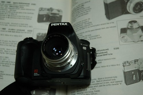 ペンタックスK100D。2006年にペンタックスによって発表されたK100Dは、6メガピクセルのデジタル一眼レフカメラで、CCDAPS-C(23.5×15.7mm)センサーを搭載しています。K10Dの代替エントリーレベルとして位置付けられていました。低価格でボディ内手ぶれ補正をし、すべてのKマウントレンズと互換性があります。K100Dにはセンサーシフト式の手ぶれ補正がない類似モデルであるK110Dも存在します。2007年には、ペンタックスはわずかにアップグレードされたK100DSuperを発表し、センサーシェイクのダスト除去機能とSDMオートフォーカスレンズ(つまり、ボディ駆動ではなく、独自の内蔵フォーカスモーターを持つレンズ)のサポートを追加しました。仕様は以下の通りです。6.1(3008x2008)メガピクセルのCCDイメージングセンサー、感度範囲ISO200-3200相当、オートフォーカス:SAFOXVIII-11フォーカスポイント、AFモード:シングルポイント、位相差検出またはマルチエリアAF、AF:シングルまたは連続、カメラの側面にあるマニュアルフォーカススイッチ、シャッター:フォーカルプレーンシャッター30秒-1/4000、センサーシフト式手ぶれ補正、レンズ。