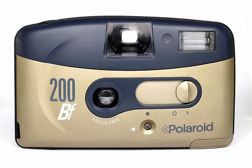 ポラロイド200Bfは、1999年頃にポラロイドによって製造された、135フィルムカートリッジ用の24x36mm写真を撮影するための固定焦点カメラです。カメラのボディはプラスチック製で、幅5インチ×高さ3インチ×奥行き1?インチです。内蔵の電子フラッシュ、モーター式のフィルム巻き上げ、2本の単3形乾電池を使用します。前面にはスライド式のレンズカバーがあり、赤目軽減機能も備えています。名前のBfは「bigviewfinder(大きなビューファインダー)」を意味します。このカメラは中国で製造されました。