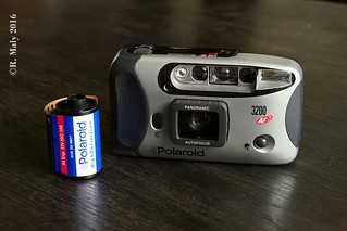 Polaroid3200AFは、35mmフィルム用のオートフォーカスコンパクトカメラで、タイで製造されました。Polaroid3000AFは、異なる色をしているものの、全く同じカメラです。3200AFは、より良いハンドリングのためにグリップ周りのデザインが改良されています。1998年に導入されました。カメラはプラスチック製で、フィルム面にマスクをかぶせるパノラマスイッチが特徴です。カメラをオンにすると、四角いフードが前に飛び出し、これを押し戻すと再び電源が切れ、レンズが保護用の扉で閉じます。上部にある小さなLCDディスプレイには露出カウンターとフラッシュ情報が表示されます。フィルムの巻き上げと巻き戻しはモーターで行われ、DXコーディングによりフィルム感度が自動設定されます。手動ユーザー設定はありません。このクラスのカメラにとって注目すべき機能は、ファインダーの近視調整機能です。データバックバージョンも利用可能でした。電源はAA電池2本(LR06)で供給されます。フィルムや電池を入れていない状態での重量は155gです。Polaroi