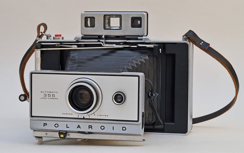 Polaroidのカメラシリーズの一部で、Automatic100からAutomatic450まで続く、共通の特徴を持つカメラです:折りたたみベローズ、自動露出、100シリーズパックフィルム。355は、折りたたみ式パックフィルムランドカメラの100-400シリーズラインの上位モデルの1つで、100、250、350、450モデルと類似しています。主な違いは、ボディの後部に開発タイマーが付いていること、およびテレメーターのアイピースが小さくなっていることです。両方のアイピースモデルは機能的に同じですが、初期モデルは後部により大きな窓があります。シャッタースピードは12-1/1200秒の範囲から自動的に選択されます。これらのモデルが他のシリーズのほとんどの「一般向け」モデルよりも優れている主な利点は、全金属ボディに三脚マウント、金属ストラップラグ、3要素ガラスレンズ(114mmf8.8)を備えていることです。このモデルは350bと同じように見えます。