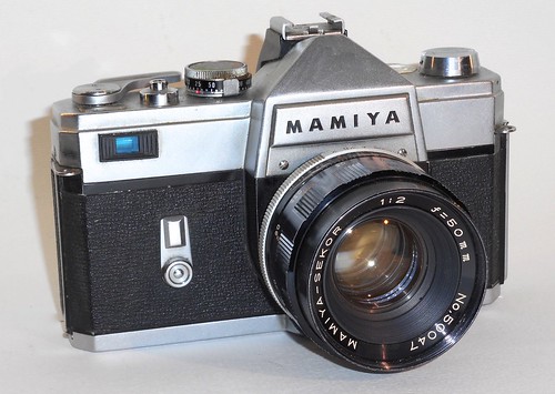 このカメラは、レンズに「Mamiya/Sekor」というブランド名が長らく使われてきましたが、ボディのネームプレートにこの表記が初めて確認されたもので、スラッシュが特徴的です。このモデルは、アメリカ向けに"Mamiya/SekorCWP"として知られることが多いですが、カメラ自体にはその表記がありませんし、他の場所ではCPと呼ばれたり、「Mamiya」とだけ書かれた名前プレートが付いていたりします。ExaktaマウントのPrismatNPとは異なり、これはMamiya初の42mmねじ込みマウントSLRでした。1964年に発売され、ほぼ同様のCanonFXと同じ年ですが、MinoltaSR-7より2年遅れです。市場には2年間されました。巻き上げレバーのすぐ前にCdSセルが配置された内蔵露出計を搭載しています。露出計範囲切り替えスイッチは、シャッタースピードダイヤルの下に同軸配置されており、そこにフィルム速度を設定します。