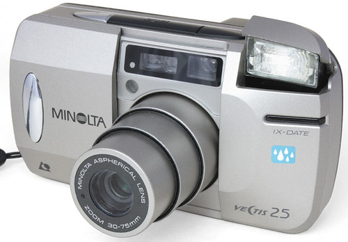 Vectis25はAPSフィルムフォーマット用のコンパクトズームカメラです。1996年にミノルタによって発売されました。レンズは30-75mm(f3.6-8.6)のズームで、35mm換算で約38-94mmに相当します。レンズはスライド式のカバーで保護されています。露出計の範囲は25-3200ISO、EV3-17(ワイドズーム時)。赤外線リモコン用の受信機が付いています。CR2バッテリーで動作し、マレーシア製です。