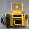 WeathermaticAは、110フィルムを使用する防水ポケットカメラです。ミノルタによって製造され、明るいイエローで、手袋をしているダイバーが使用するための大きなコントロールが付いています。仕様タイプ:防水ポケットカメラメーカー:ミノルタ発売年:1980年フィルム:16mm110フィルムカートリッジレンズ:Rokkor1:3.5/26mm(4枚のコーティングガラス要素が3グループに分かれています)ゾーンフォーカス:5つの距離が選択可能なノブで選択可能、5つの距離シンボルが付いていますシャッター:金属製ブレードシャッター、固定速度1/200秒絞り:絞りを選択可能な3つの絞り、太陽用、雲用、または懐中電灯用ビューファインダー:パララックス補正マーク、低光インジケーター、フォーカシングシンボル付きの明るいフレームファインダーフラッシュ:内蔵、絞りスイッチで選択可能フィルム巻き上げ:レバーによるバッテリー:1×AA1.5V(CdS用)