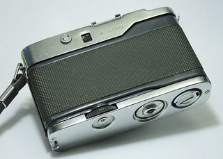ヤシカ72-Eは小型のハーフフレームカメラです。その名前がすべてを物語っています:36枚のフィルムで72枚の露出が可能です。このカメラには、0.8mから無限遠まで焦点を合わせられるYashinon28mmf/2.8のフォーカシングレンズが装備されています。絞りはf/22からf/2.8まで調整可能です。シャッターはCopalXで、B、8から1/250秒の速度があります。フィルムはカメラの底部にあるホイールで巻き上げ・コッキングされます。底部には巻き戻し解除ボタン、フィルム巻き戻しクランク、三脚ソケットを囲む露出カウンターがあります。ネジ込み式のケーブルリリースをシャッターリリースに挿入することもできます。底面ビュー画像者PFMcFarland(画像権利)