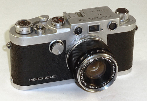YashicaYEは、1959年にヤシカによって製造された35mmのレンジファインダーカメラです。ライカねじ込みマウントを採用しています。レンズは通常、5cmのYashikorf/2.8です。ヤシカは1958年にニッカを買収し、このカメラのデザインはニッカ33を基にしています。フォーカスとビューイングのアイピースは別々になっています。フィルムの装填はカメラの底部から行います。カメラの上部には典型的なサムアドバンスレバーがあり、その周囲にはフレームカウンターも取り付けられています。シャッターダイヤルが2つあり、1つはアクセサリーシューの上にある高速シャッタースピード用で、もう1つは前面にある低速シャッタースピード用です。低速は1/2、1/4、1/8、1/15、1/30秒です。高速ダイヤルにはB、1/30-X(フラッシュ同期速度でもある)、1/60、1/125、1/250、1/500秒が含まれています。