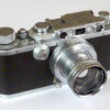 LeicaIIIcは、1940年にLeicaによって発表された35mmの距離計カメラです。アルミニウム製で、クロムメッキの真鍮製トッププレート、ベースプレート、つまみが付いています。戦争中にクロムが不足したため、一部はグレーペイント仕上げでした。LeicaIIIcは1940年から1951年まで製造されました(シリアルナンバー360,101-525,001)、約131,000台が生産されました。LeicaIIc(1948-1951、440,001-451,000)は、遅い速度ダイヤルのないIIIcでした。LeicaIc(1949-1951、455,001-562,800)もIIIcのシャーシをベースにしており、距離計や遅い速度ダイヤルはありませんでした。LeicaIIIbのアップグレードとして、LeicaIIIcには重要な変更点があります:小さな部品の組み立てではなく、一体型ダイキャストボディ。距離計のカバーは別の部品ではなくなりました。内部メカニズムが改善されました。以前のカメラより3mm長くなりました。